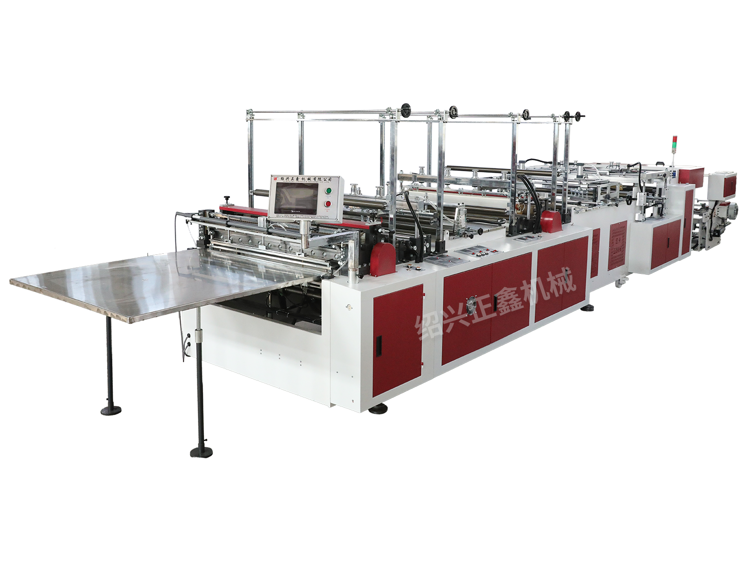 ・该类机型适宜加工高压聚乙烯的筒状本色或彩印塑料薄膜袋,特别适合加工卫生纸袋、尿片袋(可配贴片,打孔,打撕裂线)。