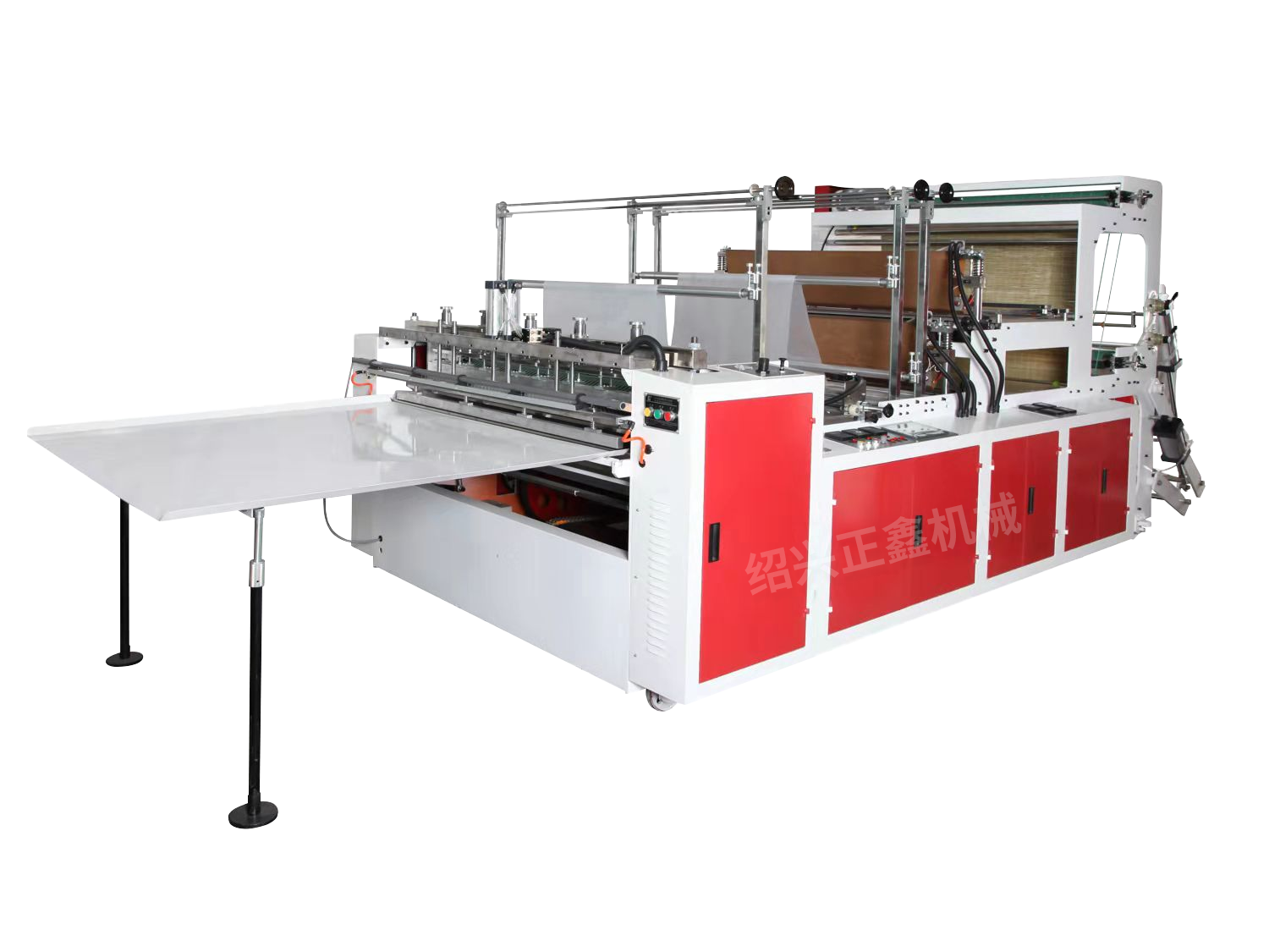 ・该类机型适宜加工各档HDPE、LDPE等本色或彩色塑料薄膜超宽平口袋。